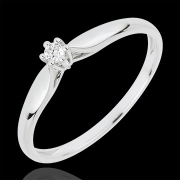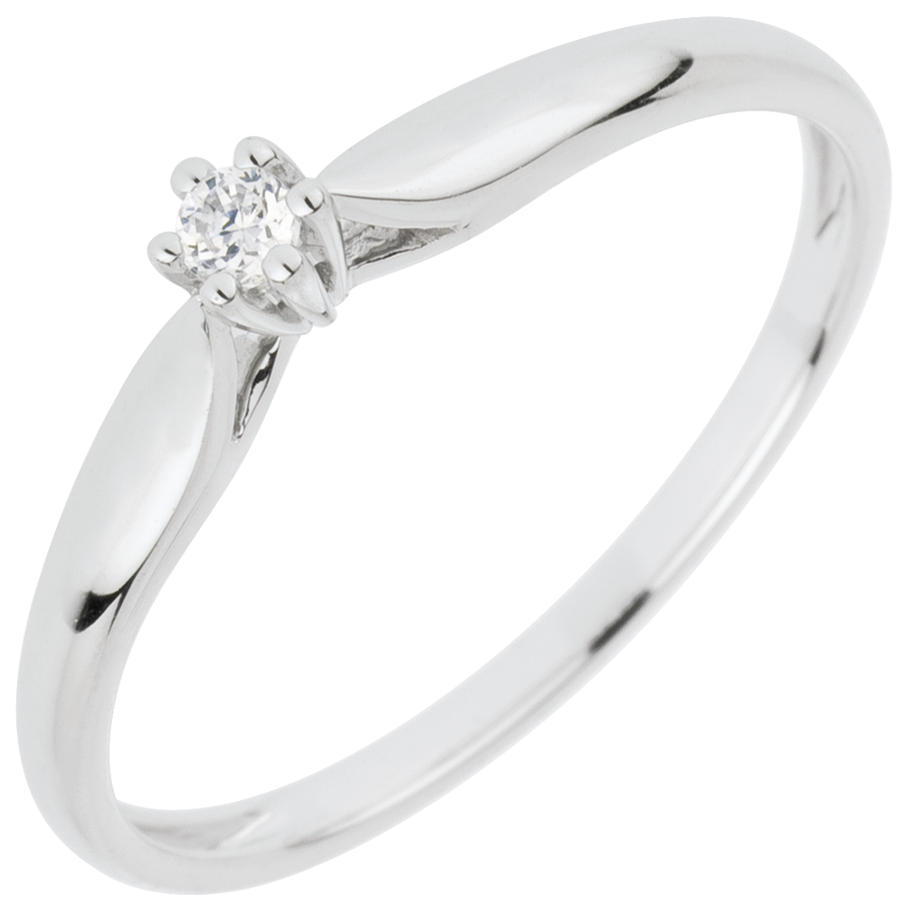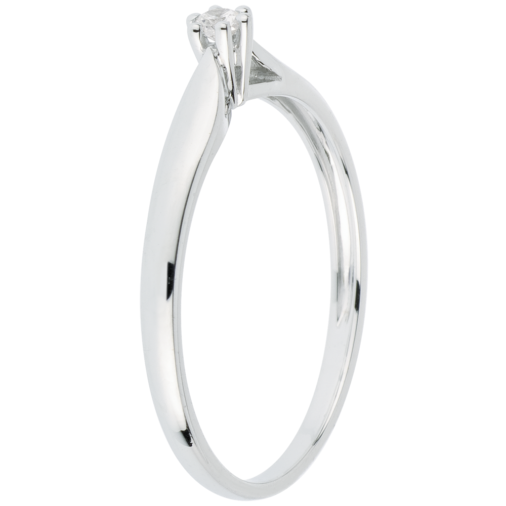 Ein Ring zart wie Schilfgras, gekrönt von einem Diamant in einer 6er Krappenfassung. 1 Diamant : 0.05 Karat - Weißgold (750/-): 1.1 g. Weitere Abmessungen
