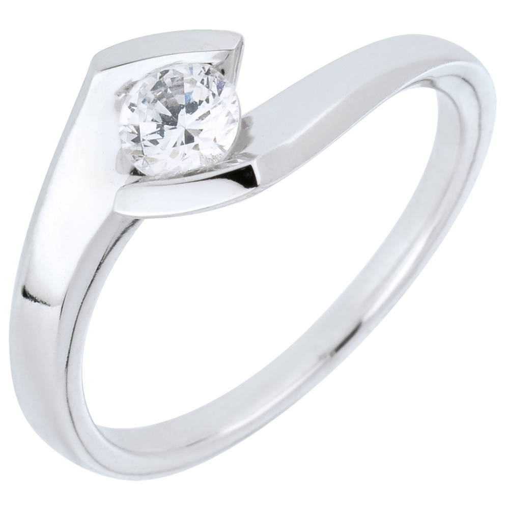 Solitär Ring Kostbarer Kokon - Sommerabend - Weißgold - 0. 32 Karat - 18 Karat