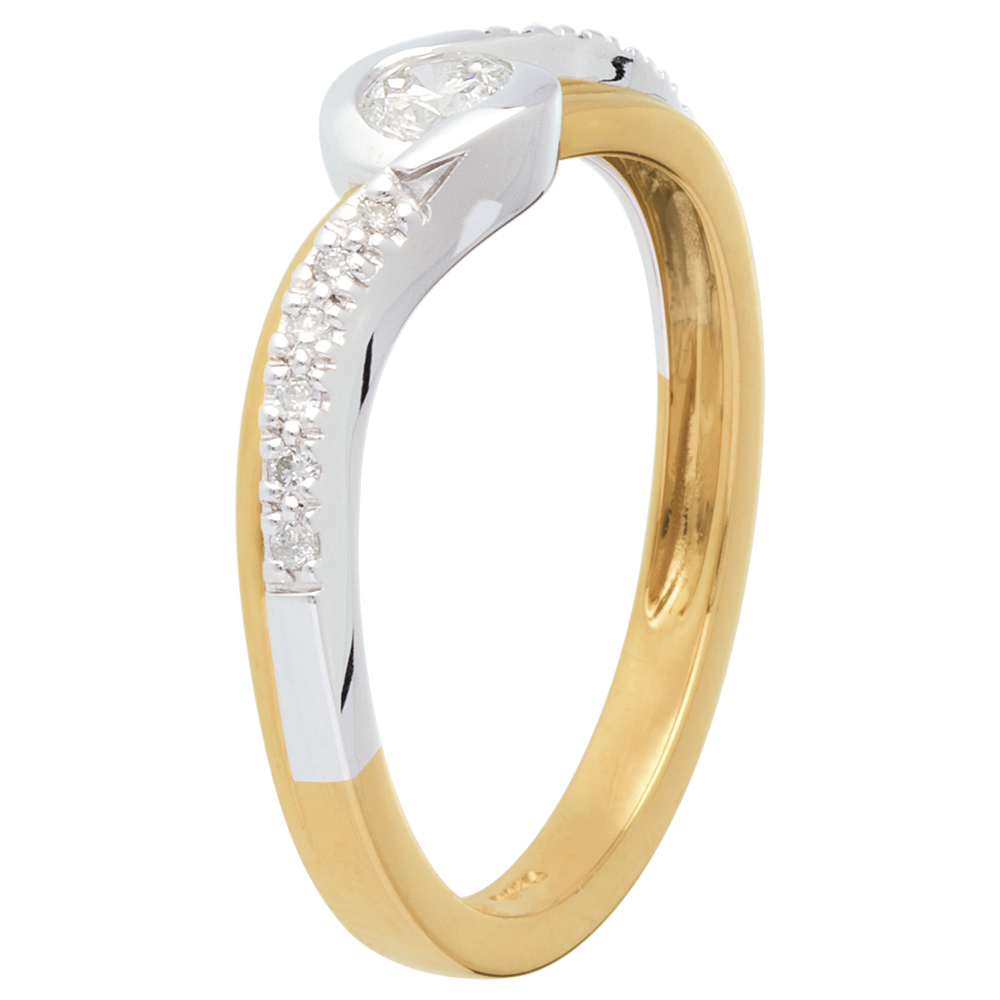Solitär Wassermann pavé in Weiss- und Gelbgold - 0.24 Karat