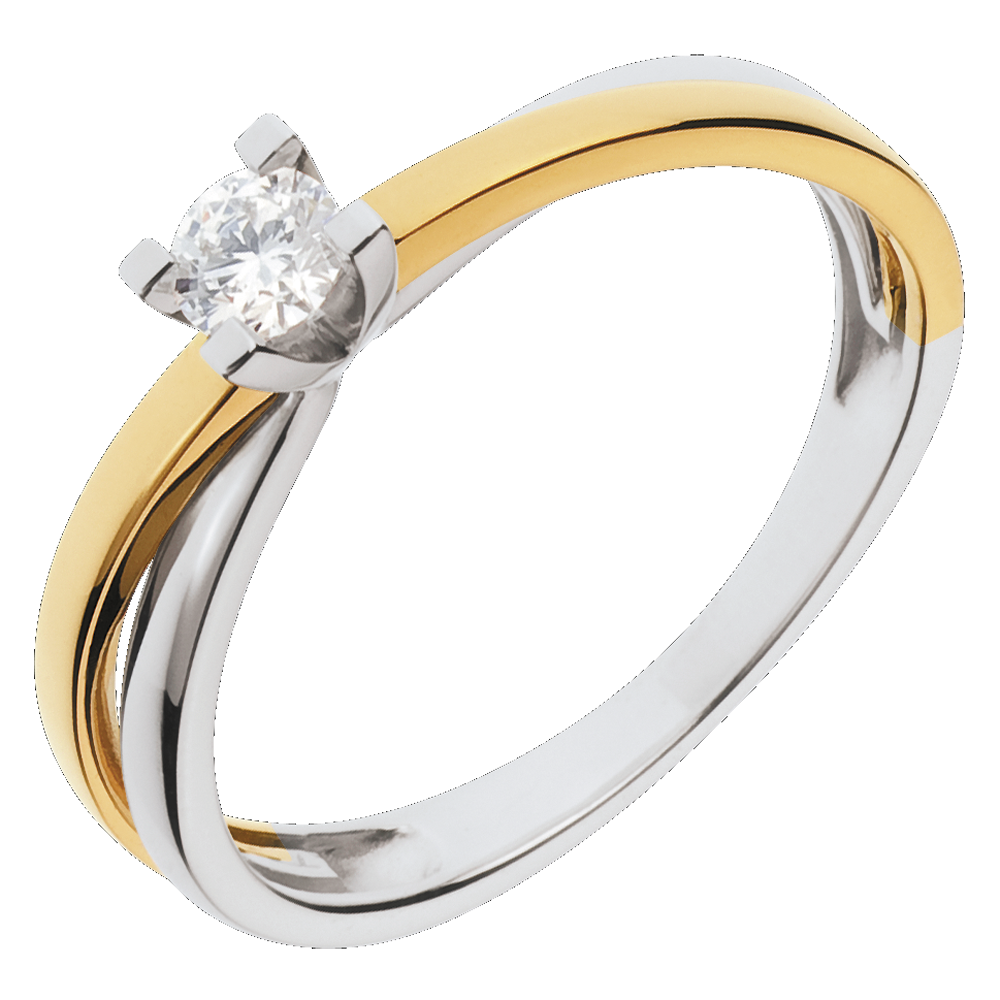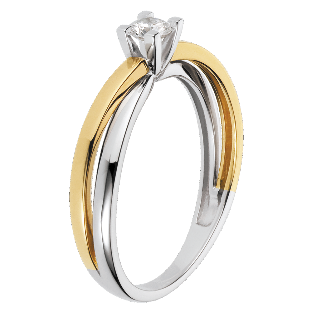 Die Vereinigung zweier Goldfarben, gekrönt durch einen edlen Diamanten. Eine schlichte und elegante Fassung mit starker Symbolik. 1 Diamant : 0.17 Karat - Weiß-und Gelbgold (750/-): 2.6 g. Weitere Abmessungen