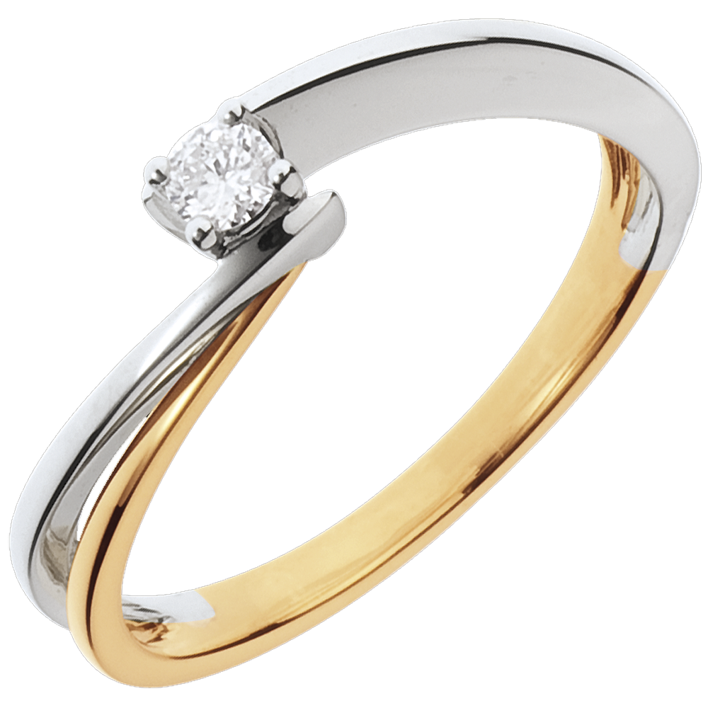 Solitärring Leuchtfaden - Gelbgold und Weissgold