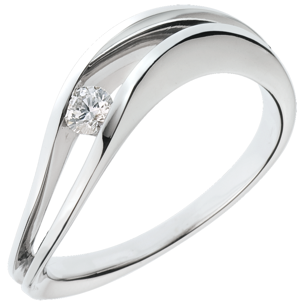 Wie ein funkelnder Stern wird dieser edle Diamant von einer Woge in Weissgold getragen.