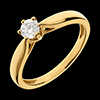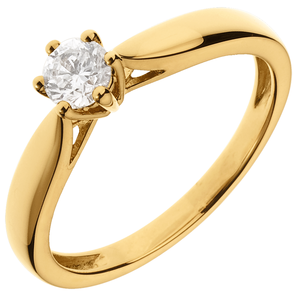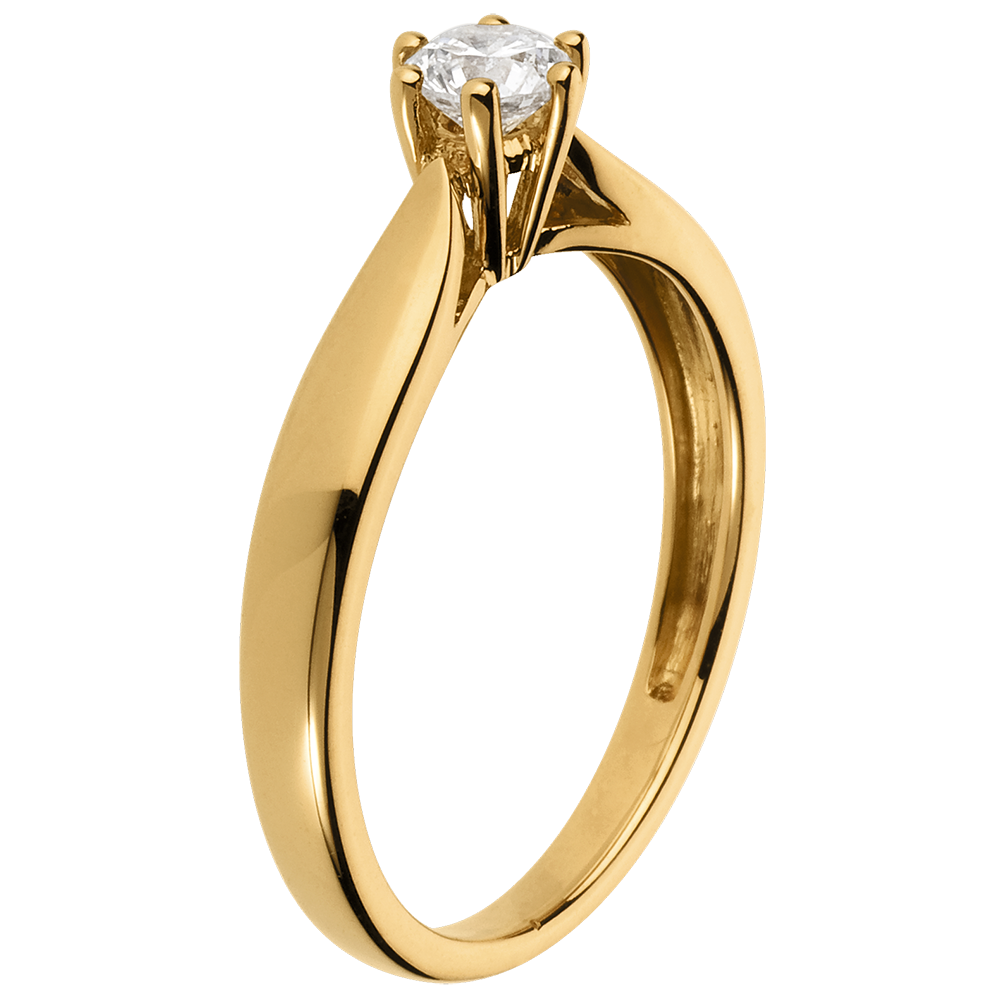 Ein zarter Gelbgoldring mit einer angeschrägten Fassung, gekrönt von einem fein eingefassten Solitärdiamanten. 1 Diamant : 0.31 Karat - Gelbgold (750/-): 2.2 g. Weitere Abmessungen