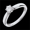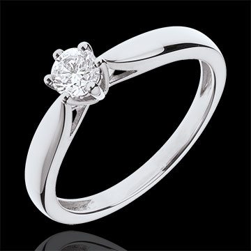 Ein zarter Weißgoldring mit einer angeschrägten Fassung, gekrönt von einem fein eingefassten Solitärdiamanten. 1 Diamant : 0.31 Karat - Weißgold (750/-): 2.2 g. Weitere Abmessungen