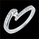 Ein fließdendes Band aus Weißgold verziert mit Diamanten bringt den Solitär aus 0.15 Karat voll zur Geltung.