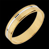 Ein Ring aus Gelbgold durchzogen vone einem zarten Band aus Weißgold für eine heitere Vereinigung. Weiß-und Gelbgold (750/-): 4.8 g. Weitere Abmessungen