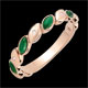 Ein moderner Ehering in Roségold, bei dem sich Diamanten und Malachite in raffiniertem Marquiseschliff miteinander abwechseln. Dieser Ring sowohl als Trauring, als auch als besonderes Highlight getragen werden. 5 Diamanten : 0.03 Karat - Rotgold (750/-): 2.3 g. Diamant : 5 - Malachit : 6 - Total: 0.78 Karat Weitere Abmessungen