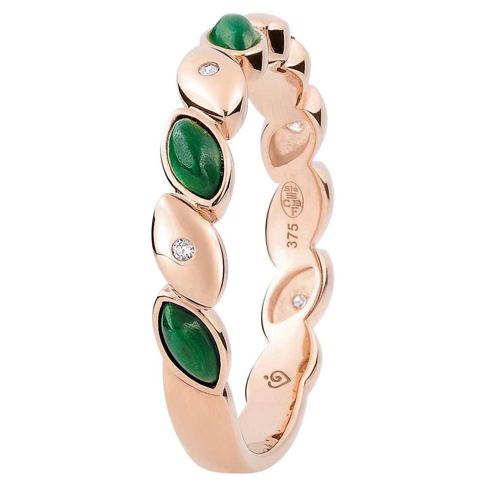 Trauring Felicitas - Malachit und Diamanten - 750er Roségold