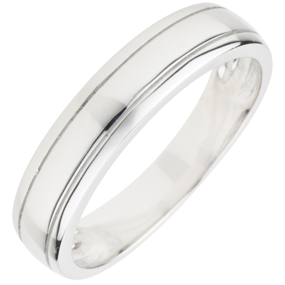 Ein Trauring -Band aus Weissgold im zeitlos Klassischem Relief.