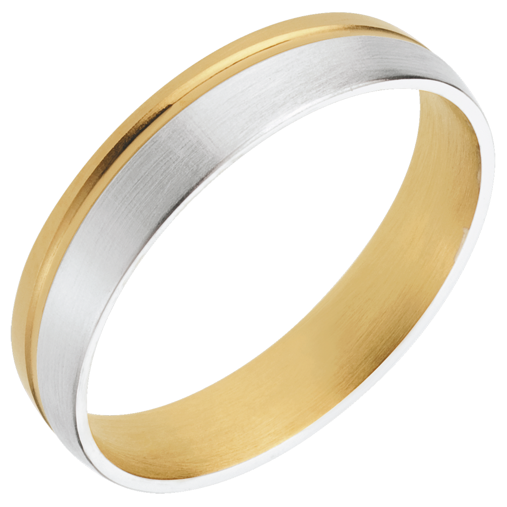 Dieser schlichte und raffinierte Trauring ist eine Verschmelzung von gebürstetem Weissgold und Gelbgold. Weiß-und Gelbgold (750/-): 4.5 g. Weitere Abmessungen