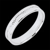 Ein Trauring aus Weißgold mit mittiger Prägung für ein Maximum an Brillanz.