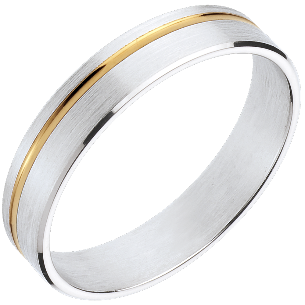 Dieser Weissgoldring wird durchzogen von einem Gelbgoldfaden - eine harmonische Einheit.