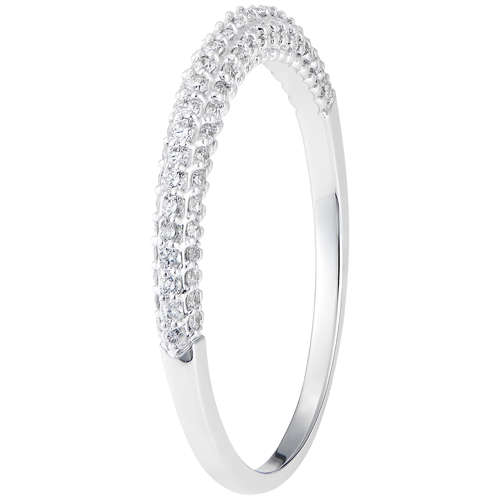 Ein diamantbesetzter Trauring, der durch seine seitlichen Pavierung eine beispiellose Brillanz aufweist.