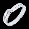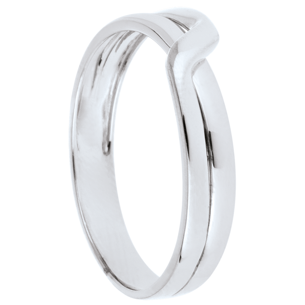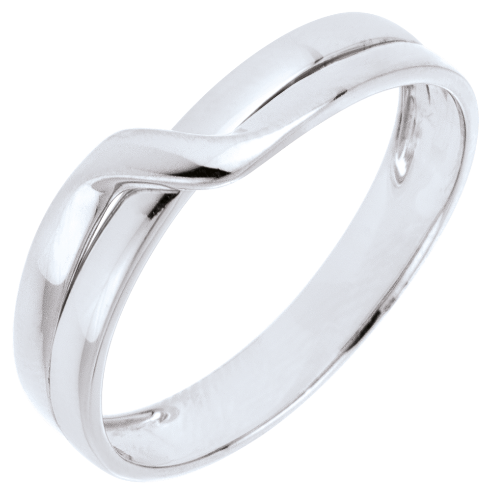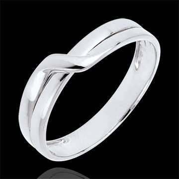 Ein Band aus Weißgold leidenschaftlich umschlungen von einem Streifen aus Gold.