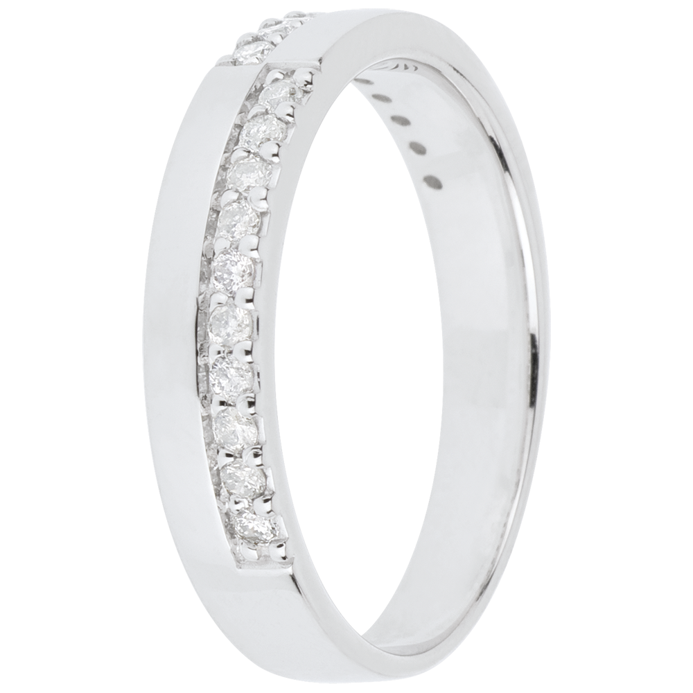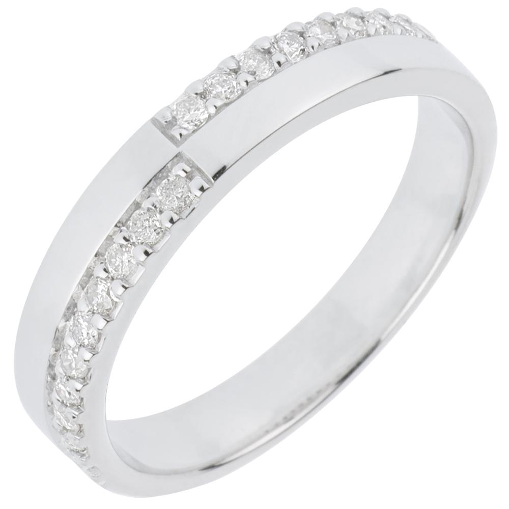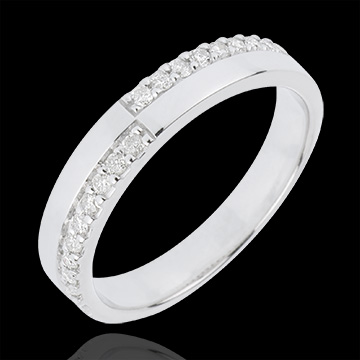 Ein Trauring halb und halb aus Weißgold und Weißgold besetzt mit funkelnden Diamanten - für eine edle und moderne Balance. 20 Diamanten : 0.2 Karat - Weißgold (750/-): 3.6 g. Weitere Abmessungen