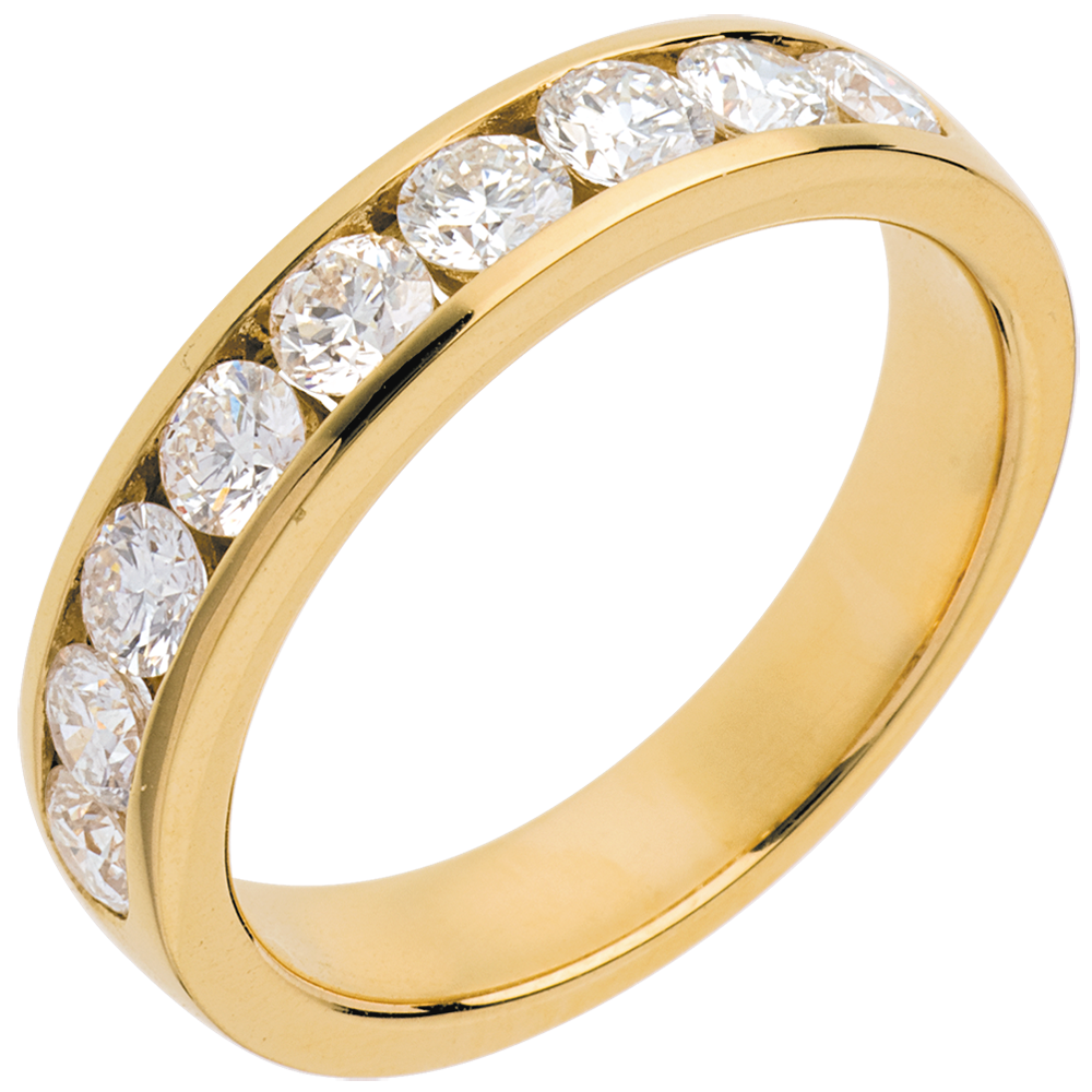 Trauring zur Hälfte mit Diamanten besetzt in Gelbgold - Kanalfassung - 1 Karat - 9 Diamanten