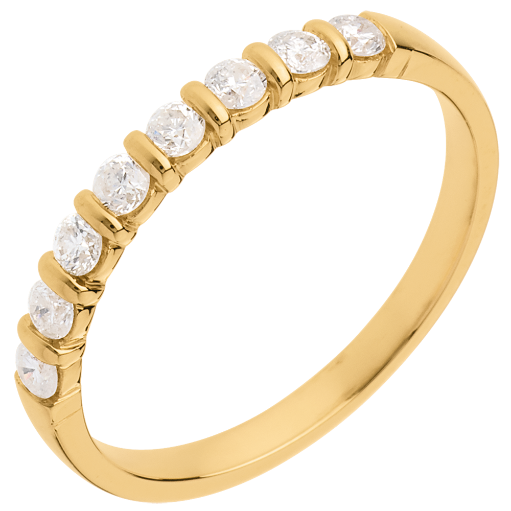 Trauring semi pavé in Gelbgold - Krappenfassung - 0.3 Karat - 8 Diamanten