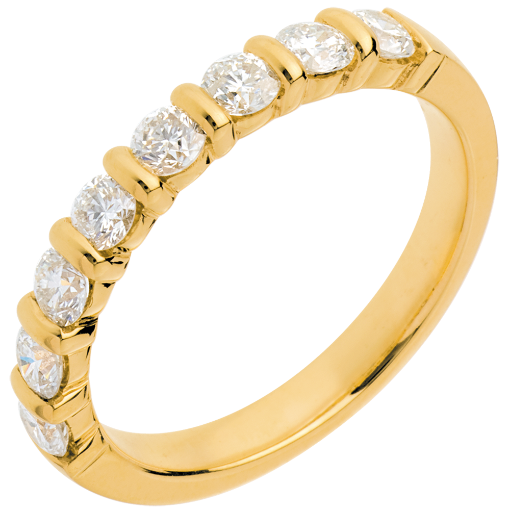Trauring semi pavé in Gelbgold - Krappenfassung - 0.65 Karat - 8 Diamanten