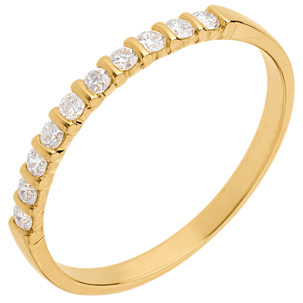 Trauring zur Hälfte mit Diamanten besetzt in Gelbgold - Krappenfassung - 10 Diamanten