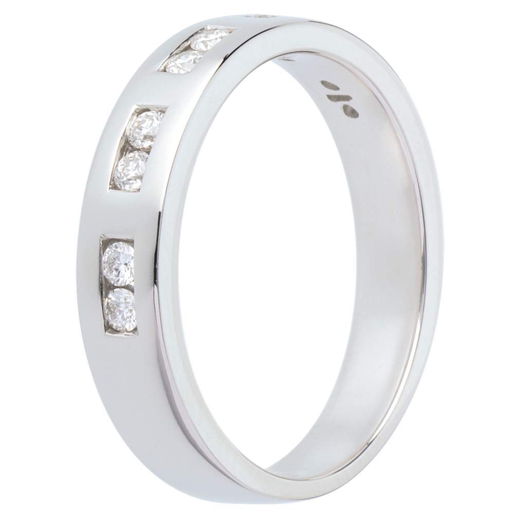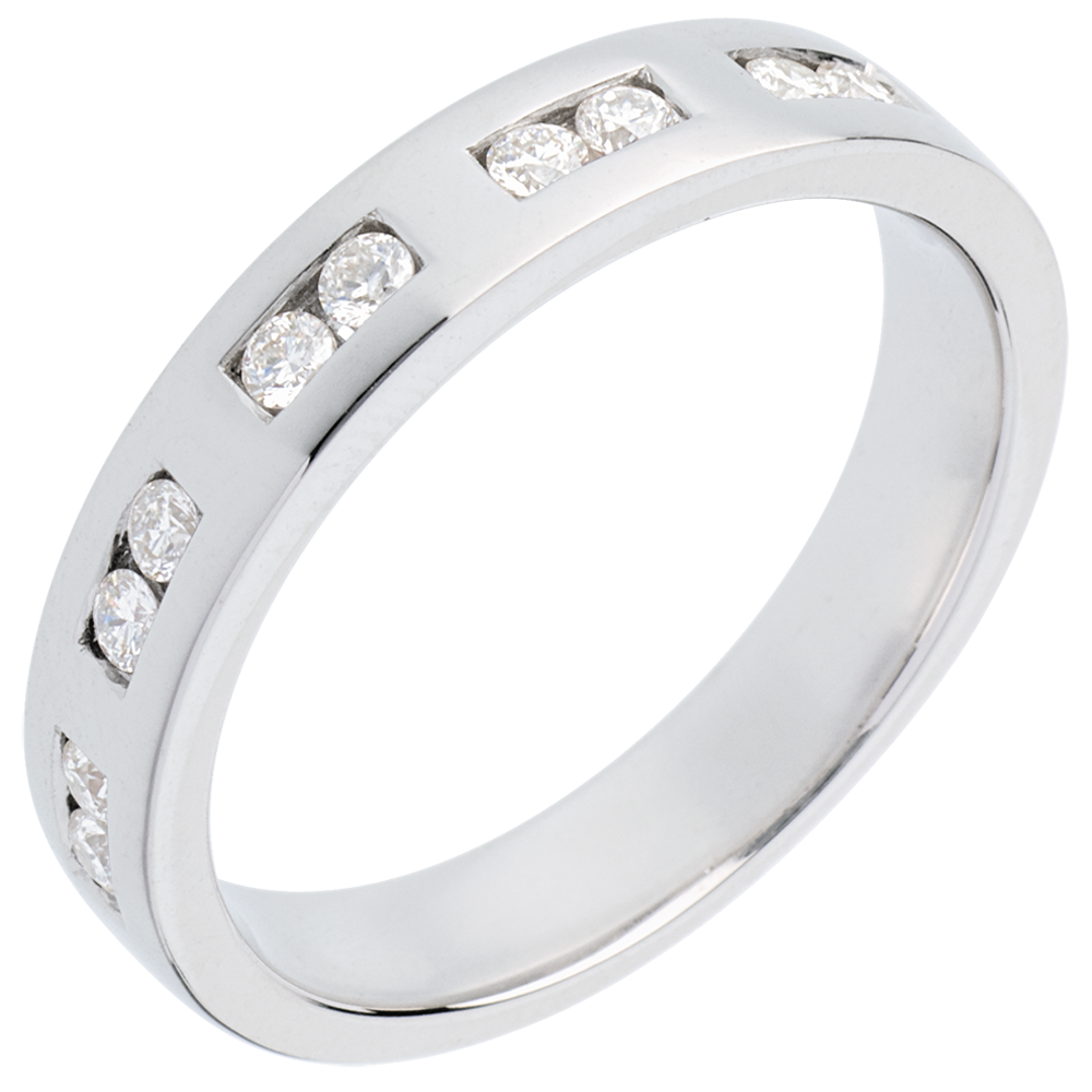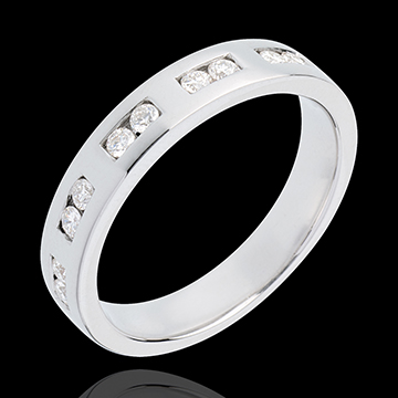 Trauring zur Hälfte mit Diamanten besetzt in Weissgold - Kanalfassung - 0.22 Karat - 10 Diamanten
