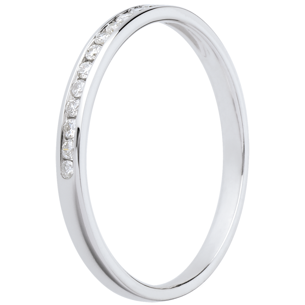 Trauring zur Hälfte mit Diamanten besetzt in Weissgold - Kanalfassung - 13 Diamanten