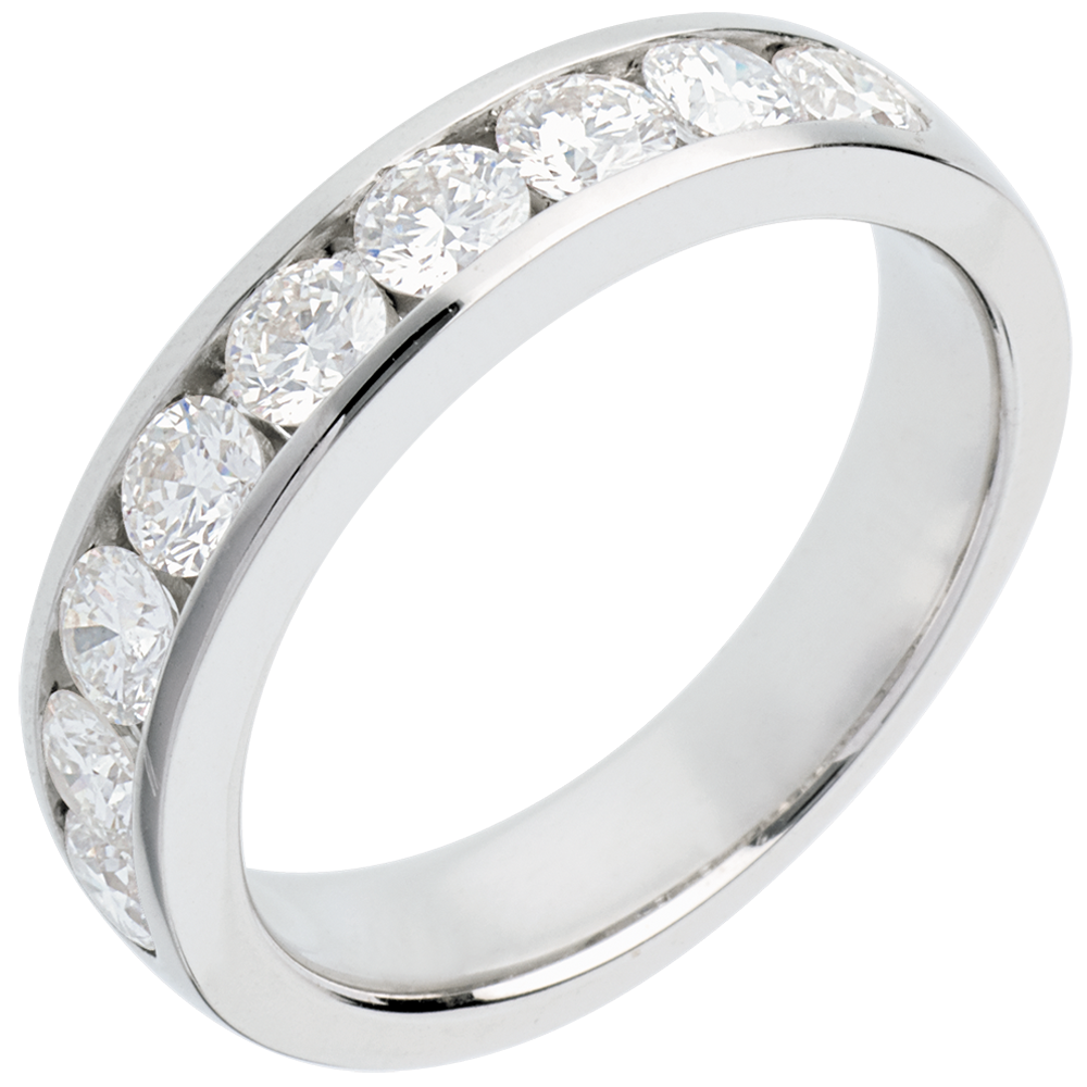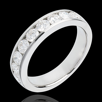 Trauring zur Hälfte mit Diamanten besetzt in Weissgold - Kanalfassung - 1 Karat - 9 Diamanten
