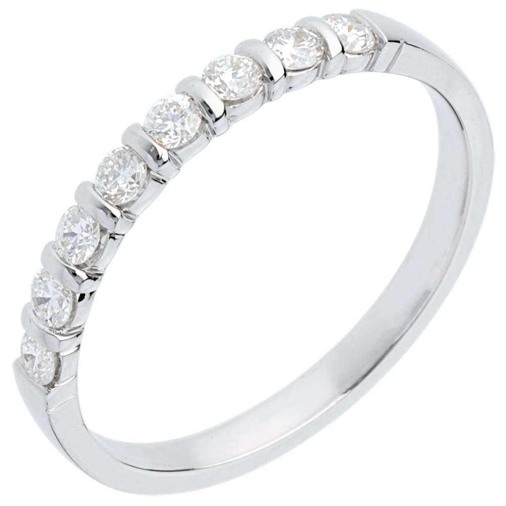 Trauring zur Hälfte mit Diamanten besetzt in Weissgold - Krappenfassung - 0.3 Karat - 8 Diamanten