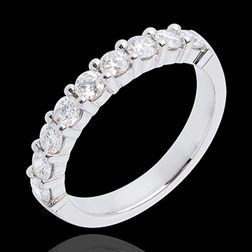 Trauring semi pavé in Weissgold - Krappenfassung - 0.75 Karat - 9 Diamanten