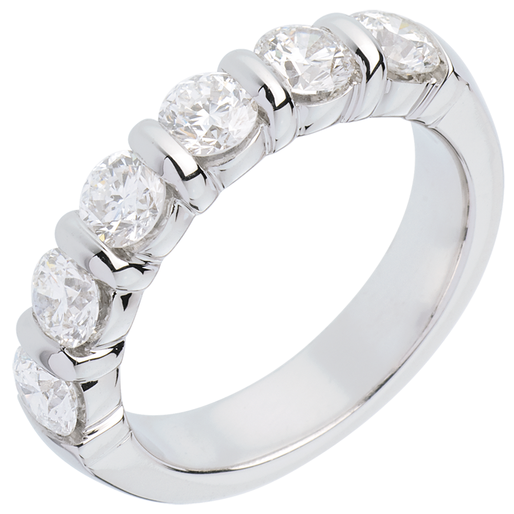 Trauring semi pavé in Weissgold - Krappenfassung - 1.5 Karat - 6 Diamanten