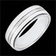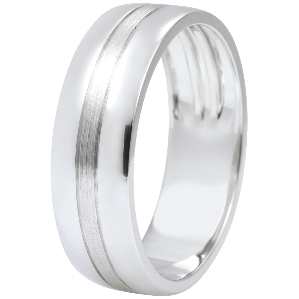 Ein breiter Ring in Weissgold ist von einem Streifen aus abgebürstetem Gold überquert.