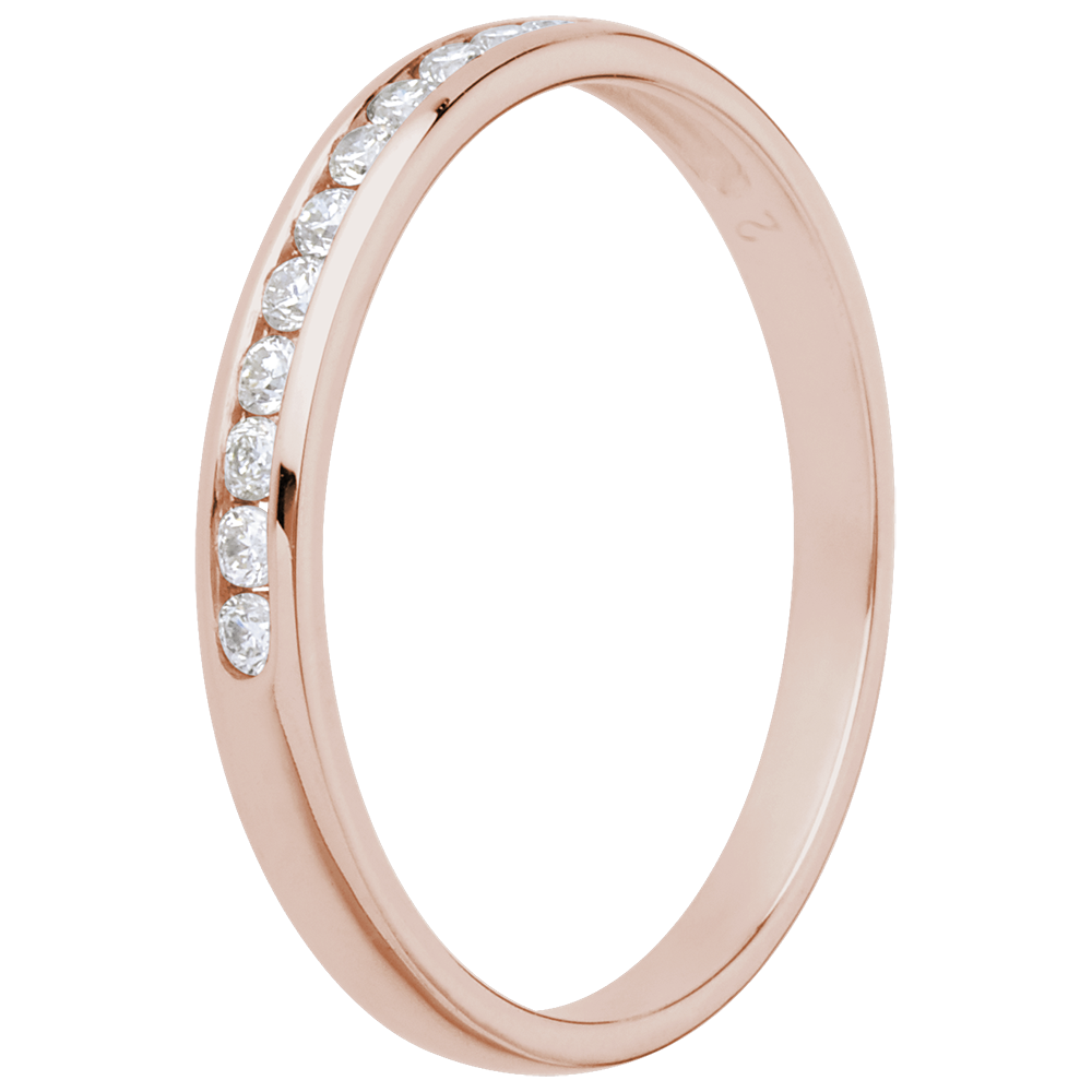 Trauring zur Hälfte mit Diamanten besetzt in Roségold - Kanalfassung - 11 Diamanten