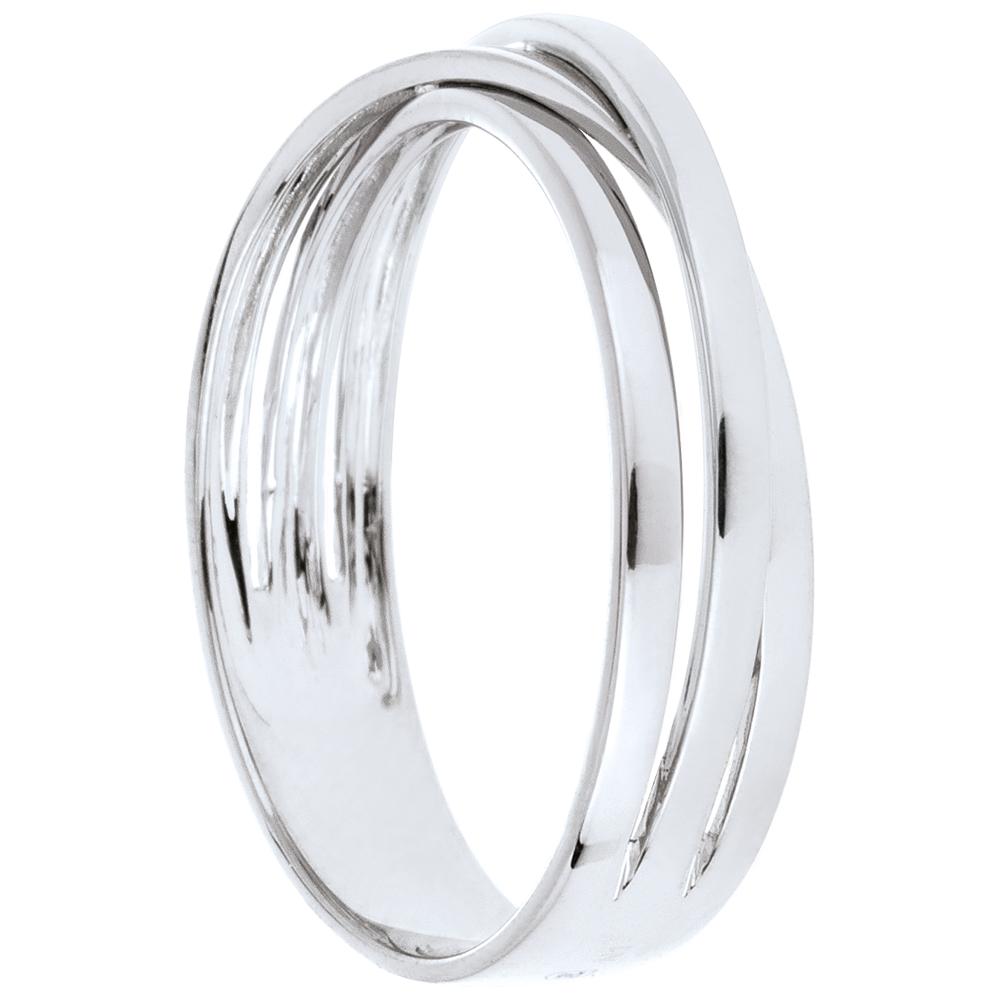 Drei erlesene Ringe in Weißgold, vereinen sich zu einem feinen und schwungvollen Trauring.