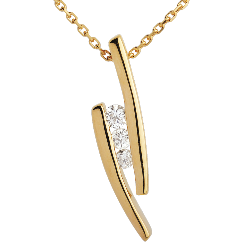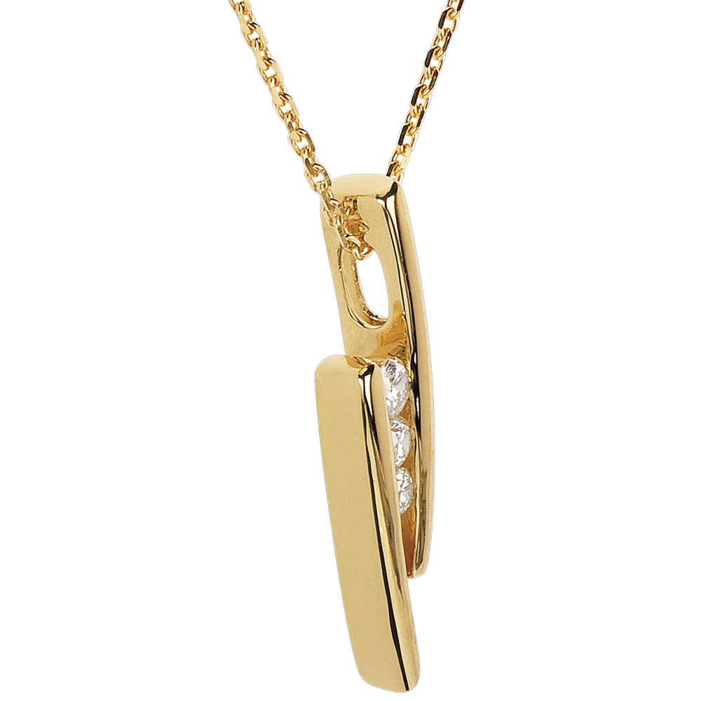 Eine edle Diamantentrilogie ist eingefasst von zwei schlichten Gelbgoldstäbchen. Ein originelles Collier.