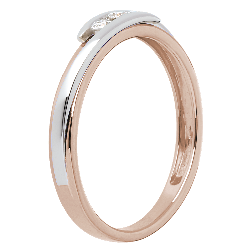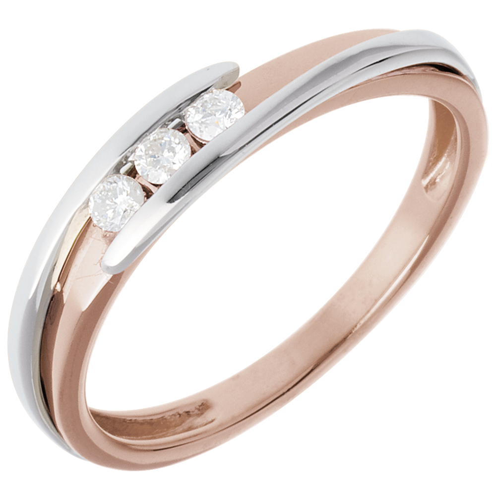 Trilogie Ring Kostbarer Kokon - Anziehungskraft -Weiß- und Roségold - 3 Diamanten 0.11 Karat - 18 Karat