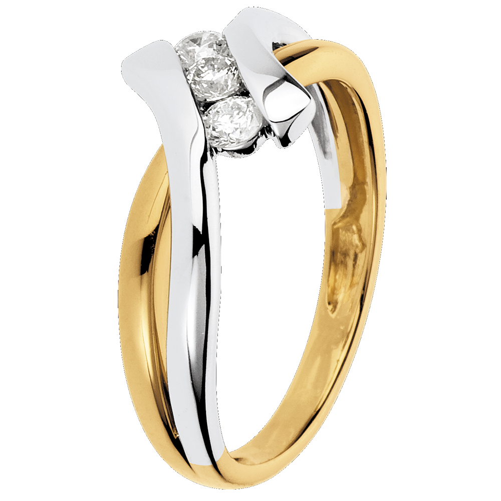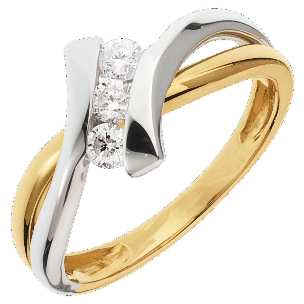 Trilogie Ring Kostbarer Kokon - Dolce Vita -Weiß-und Gelbgold - 3 Diamanten 0.22 Karat - 18 Karat