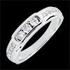Eine umschlossene Trilogie auf einem Ringkörper in Weißgold, umrandet von Diamanten. 13 Diamanten : 0.24 Karat - Weißgold (375/-): 2.7 g. Weitere Abmessungen