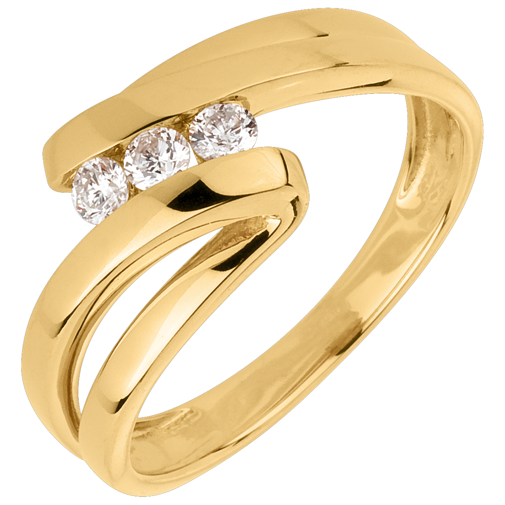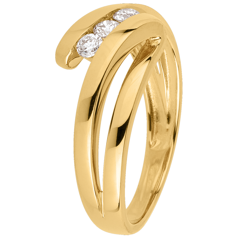 Trilogie Ring Kostbarer Kokon - Najade - Gelbgold- 3 Diamanten - 18 Karat