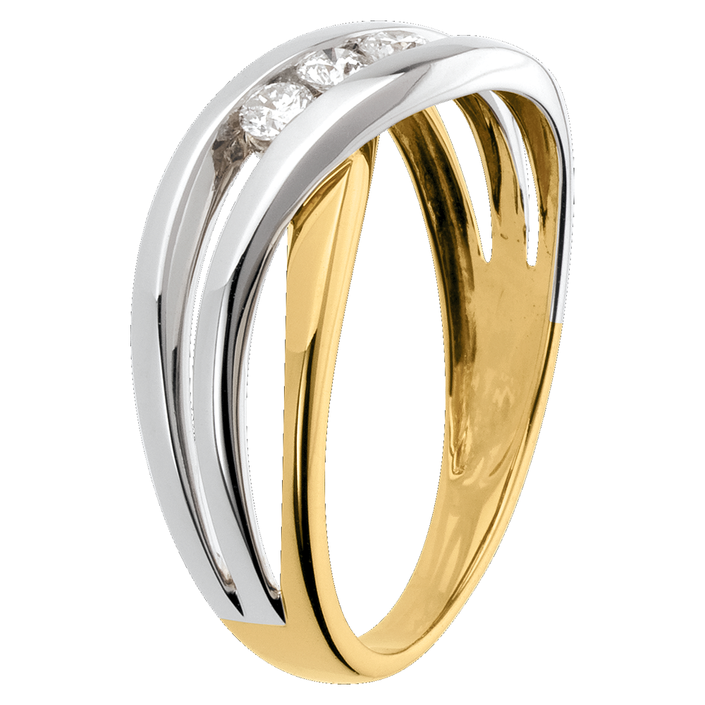 Eine funkelnde Diamantentrilogie auf einer Fassung, die an die sanften Schwingungen des Meeres erinnert. 3 Diamanten : 0.16 Karat - Weiß-und Gelbgold (750/-): 2.7 g. Weitere Abmessungen