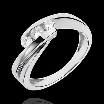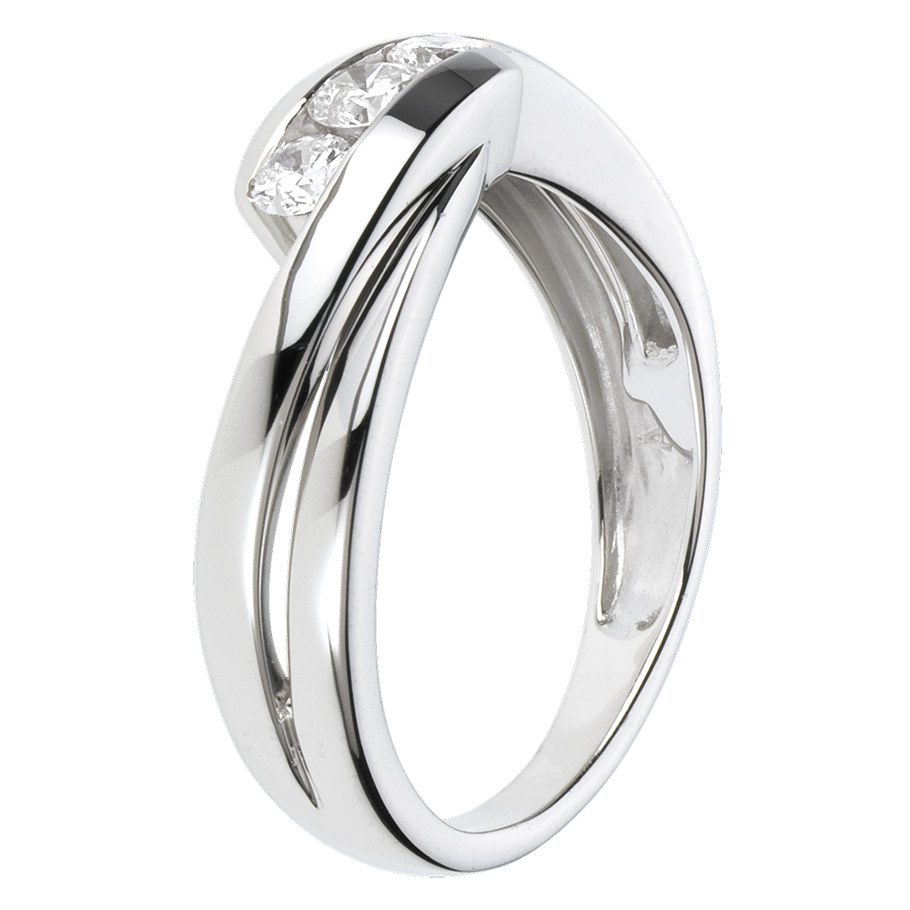 Dieser elegante Diamantring strahlt Reinheit und Eleganz aus: eine edle Diamantentrilogie auf einer fein geschwungenen Weißgoldfassung. 3 Diamanten : 0.32 Karat - Weißgold (750/-): 3 g. Weitere Abmessungen