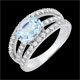 Kunden loben das originelle Design und die sorgfältige Verarbeitung dieses Rings. Besonders geschätzt werden das Funkeln der Diamanten und die Schönheit des blauen Topas. Ein modernes und elegantes Schmuckstück, ideal für Verlobungen oder besondere Geschenke.