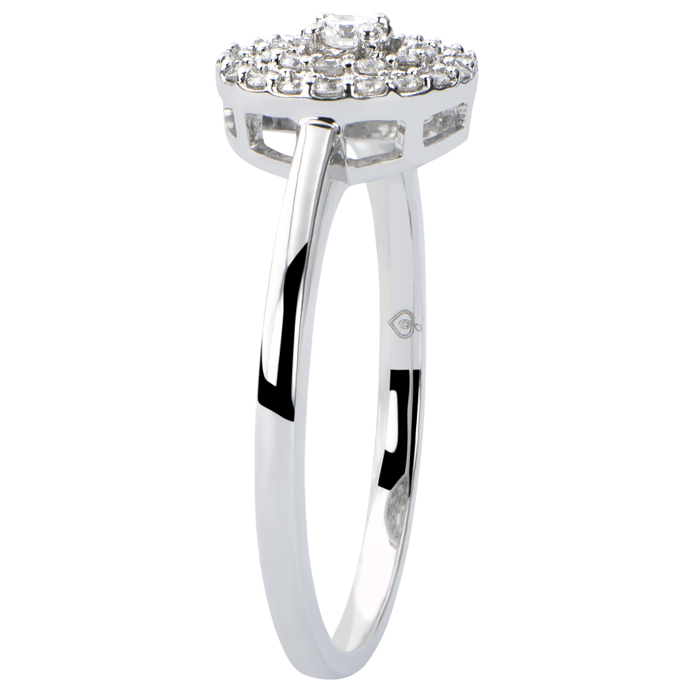 Ein Verlobungsring mit Charakter, verziert mit einem zentralen Diamanten, besetzt mit einem doppelten Diamantenhalo. Ein raffinierter Rahmen, der ein schimmerndes, beinahe hypnotisches Leuchten verspricht. 32 Diamanten : 0.23 Karat - Weißgold (750/-): 2.3 g. Pavé aus natürlichen Diamanten : 32 - Weitere Abmessungen