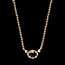 Die Halskette ist mit einem 0,3 Karat synthetischen blauen Saphir und zwei 0,1 Karat synthetischen Diamanten besetzt.