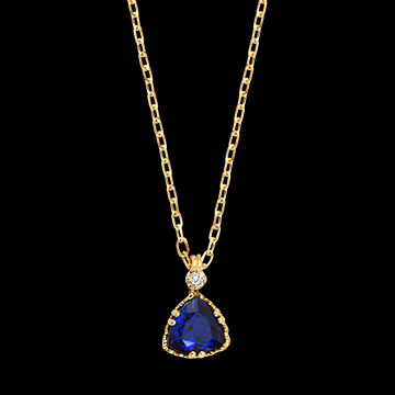 PARADIESVOGEL NR. 13Collier - Gelbgold 375/-(9Kt) - Synthetischer Saphir, Labordiamant ID : 3730